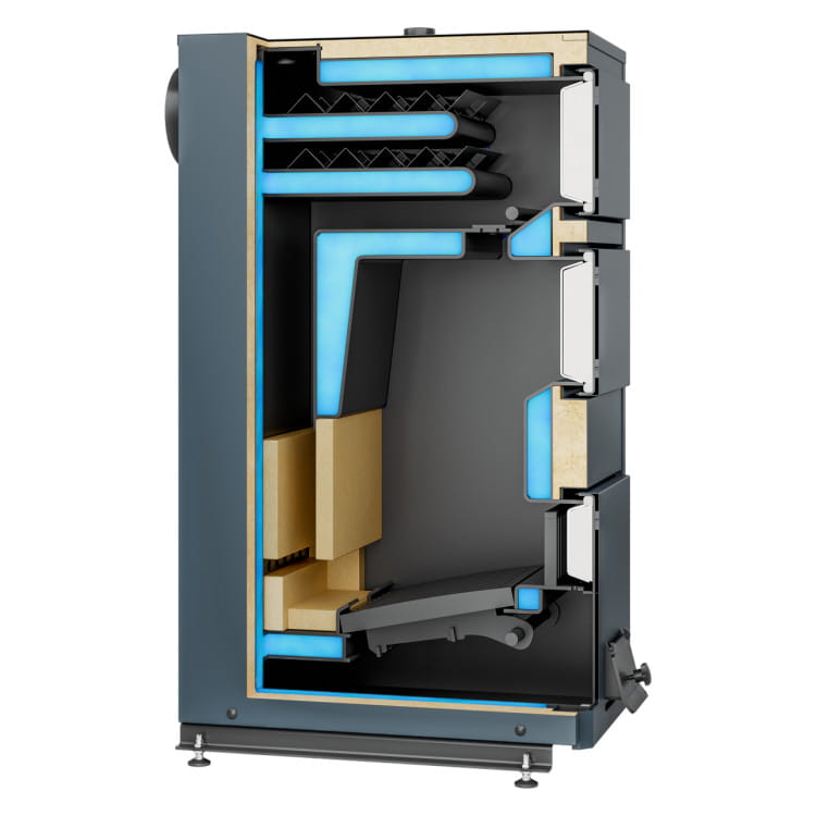 Kotły KAMEN wyróżniają się wyjątkową sprawnością cieplną, co jest efektem zastosowania nowoczesnych rozwiązań technologicznych. Korpus kotła, otoczony płaszczem wodnym, izolacją oraz solidną stalową obudową, zapewnia maksymalną efektywność energetyczną. Dodatkowo, rozbudowany wymiennik ciepła i zawirowywacze spalin znacząco podnoszą wydajność cieplną całego systemu, czyniąc ogrzewanie ekonomicznym i efektywnym.