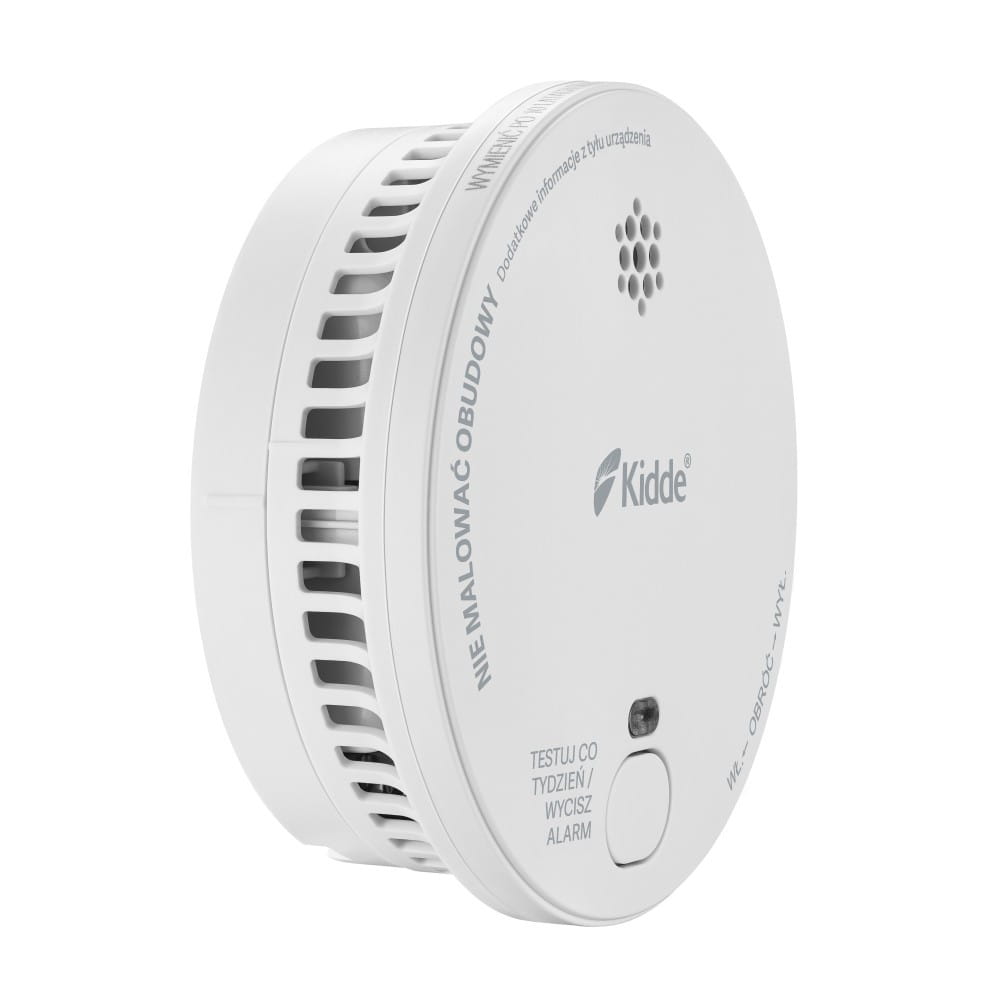 - Wysokiej jakości sensor optyczny Kidde zapewniający długotrwałą i bezproblemową pracę czujki