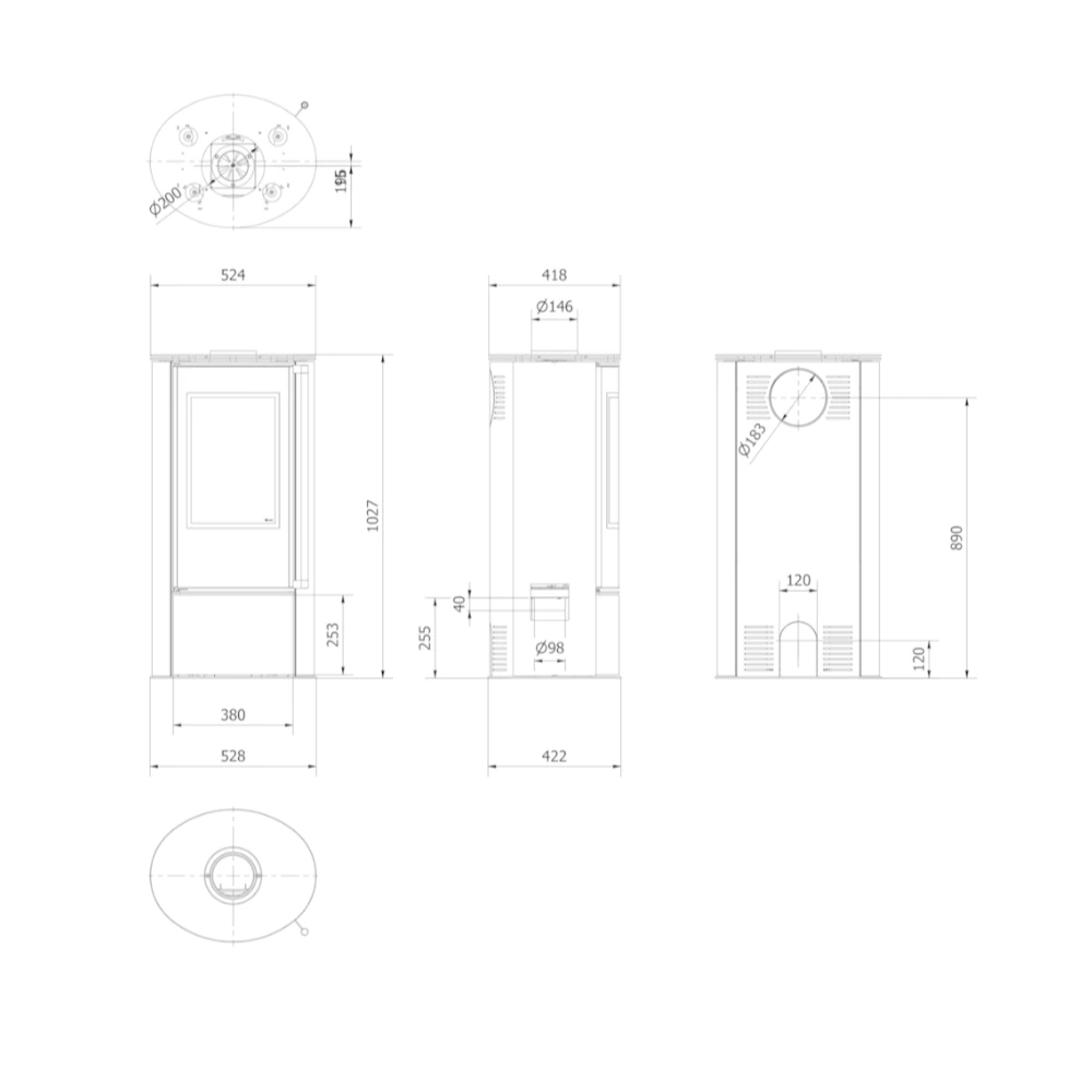 - ułatwiony montaż pieca dzięki otworowi w podstawie - Ø200mm,