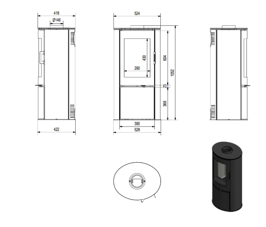 | Wyposażenie | - nawiew powietrza na szybę - wymienna tylna płyta - ogranicznik drewna - ruszt uszczelka z pamięcią kształtu |