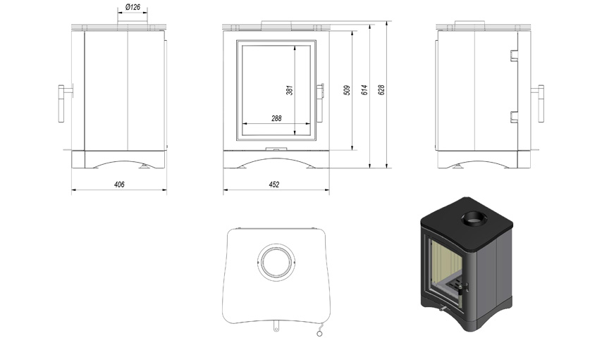 | Wyposażenie | - nawiew powietrza na szybę - wymienna tylna płyta - ogranicznik drewna - ruszt uszczelka z pamięcią kształtu |