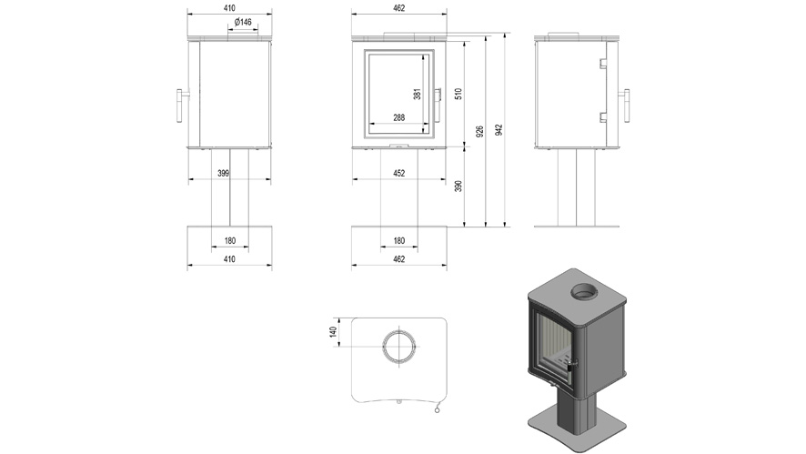 | Wyposażenie | - nawiew powietrza na szybę - wymienna tylna płyta - ogranicznik drewna - ruszt uszczelka z pamięcią kształtu |