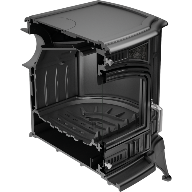 Maksymalne wykorzystanie ciepła i bezawaryjne działanie dzięki ściankom paleniska wykonanym z wysokiej jakości żeliwa o grubości 8 mm.