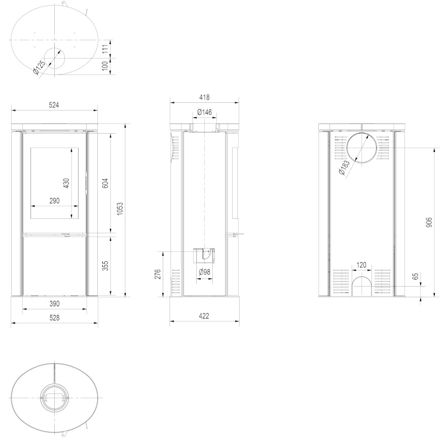 Możliwość zastosowania w różnych warunkach montażowych, dzięki regulowanemu wylotowi spalin: z tyłu lub na górze pieca (przy montażu wylotu z tyłu pieca wymagany jest zakup zaślepki płyty górnej).