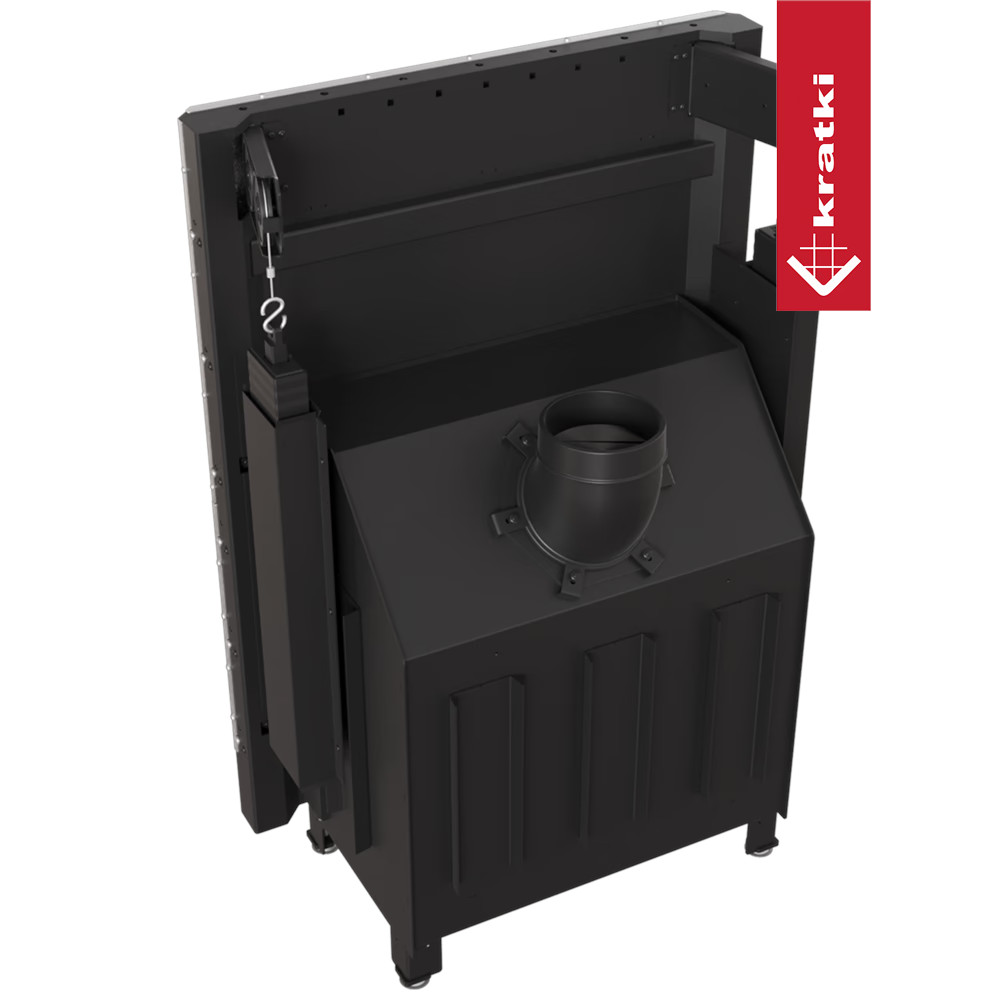 KRATKI POWIETRZNY WKŁAD KOMINKOWY ZIBI ECO GILOTYNA, CZARNE WYŁOŻENIE, DOMYKANIE DRZWI FI 180 9,9 KW