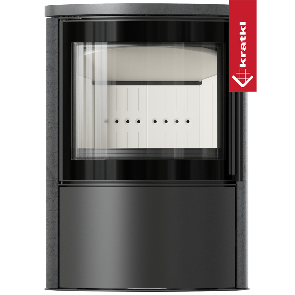 KRATKI PRO PIEC STALOWY BJORN Z OZDOBNĄ CERAMIKĄ AKUMULACYJNĄ KOLOR GRAFITE SATIN, POKRYWA CERAMICZNA, Z DOMYKANIEM FI 150 7 KW