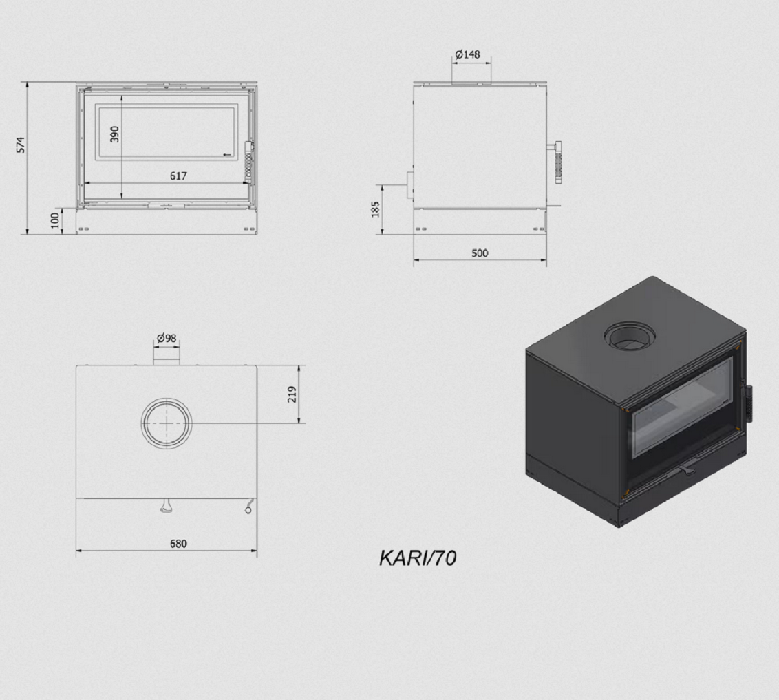 KRATKI PRO PIEC STALOWY KARI 70 FI 150 8 KW KOMINEK W ZABUDOWIE Z DOMYKANIEM