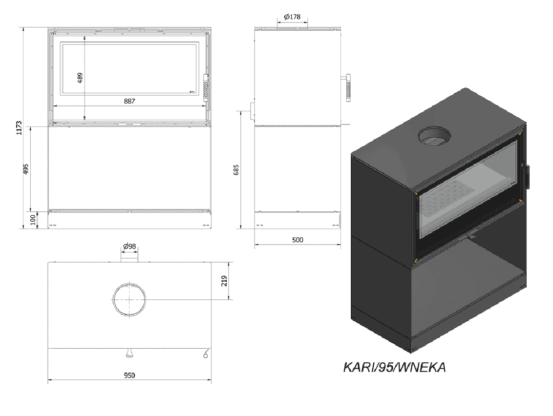 KRATKI PRO PIEC STALOWY KARI95 FI 180 14 KW KOMINEK W ZABUDOWIE WNĘKA NA DREWNO Z DOMYKANIEM