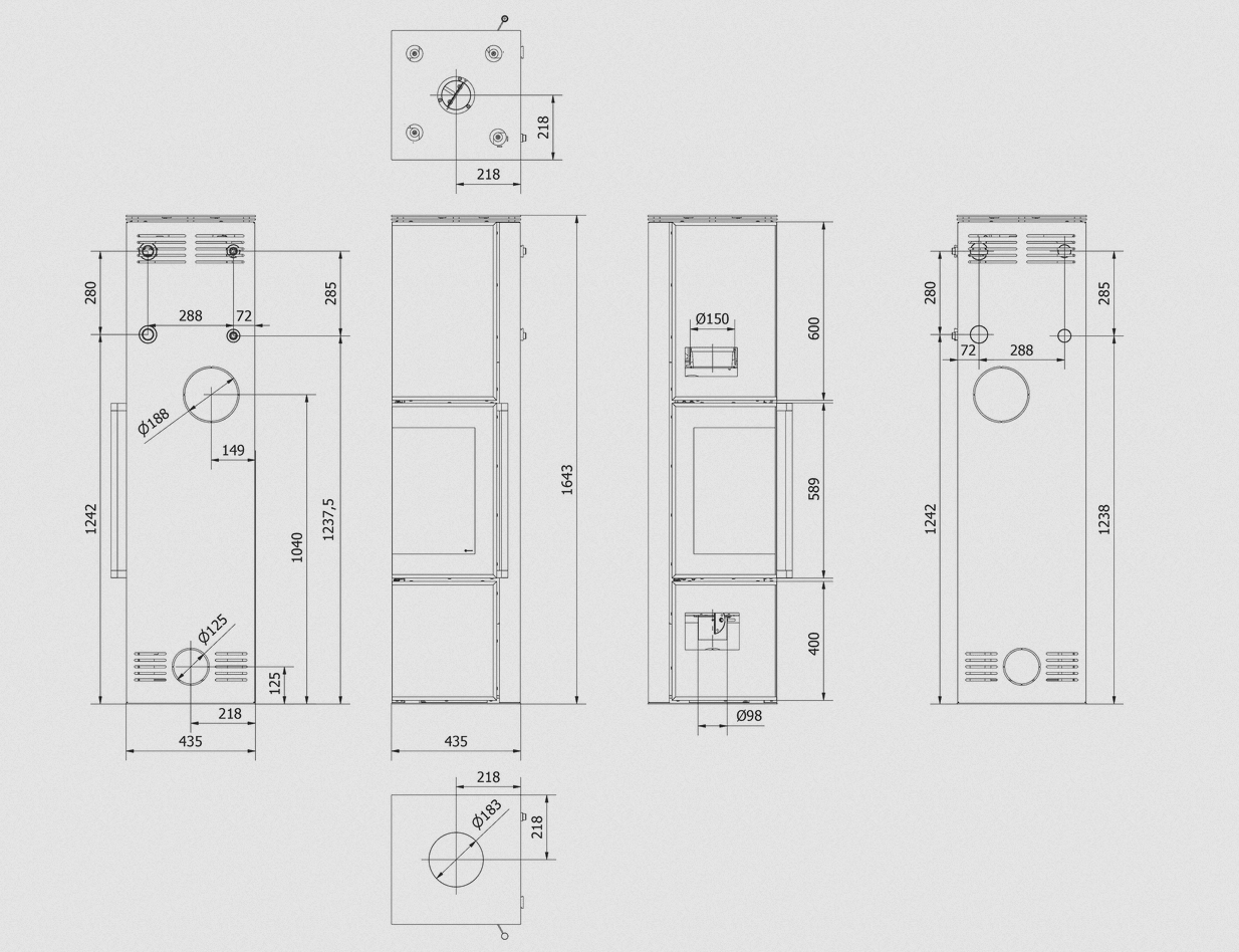 - możliwość́ podłączenia wylotu spalin zarówno od góry jak i tyłu urządzenia,