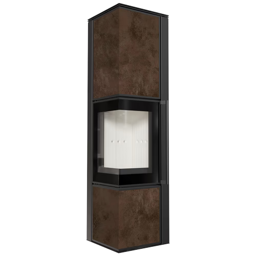 TORA to nowoczesny piec stalowy na drewno wykończony wykończony płytą ze spieku kwarcowego i dwustronnym przeszkleniem. Wyposażony jest w narożne drzwi ozdobione czernionym przeszkleniem celem pogłębienia wizji ognia. Piec posiada wygodny uchwyt w formie relingu do otwierania drzwi. Jest to piec, który oferuje wygodę i bezpieczeństwo użytkowania, przy jednoczesnym nowoczesnym designie.