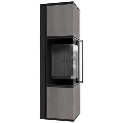 TORA to nowoczesny piec stalowy na drewno wykończony wykończony płytą ze spieku kwarcowego i dwustronnym przeszkleniem. Wyposażony jest w narożne drzwi ozdobione czernionym przeszkleniem celem pogłębienia wizji ognia. Piec posiada wygodny uchwyt w formie relingu do otwierania drzwi. Jest to piec, który oferuje wygodę i bezpieczeństwo użytkowania, przy jednoczesnym nowoczesnym designie.