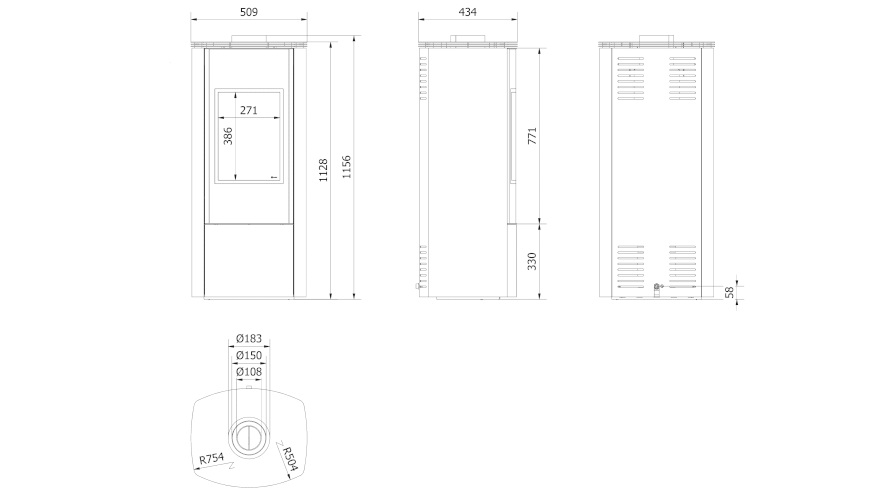 | Średnica wylotu spalin (mm) | 150 |