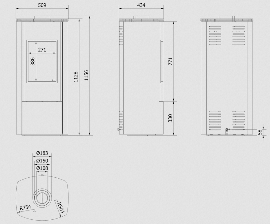 | Średnica wylotu spalin (mm) | 150 |