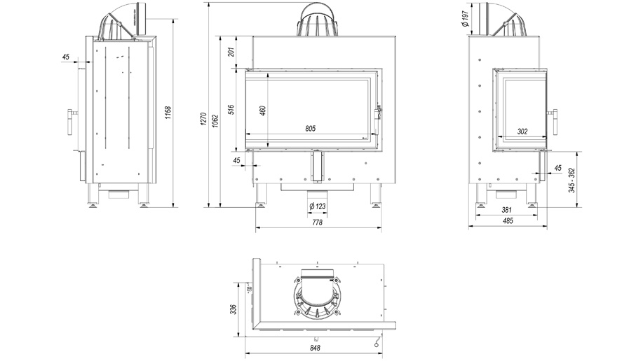 | Wyposażenie | - nawiew powietrza na szybę - wymienna tylna płyta - ogranicznik drewna - ruszt uszczelka z pamięcią kształtu |