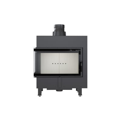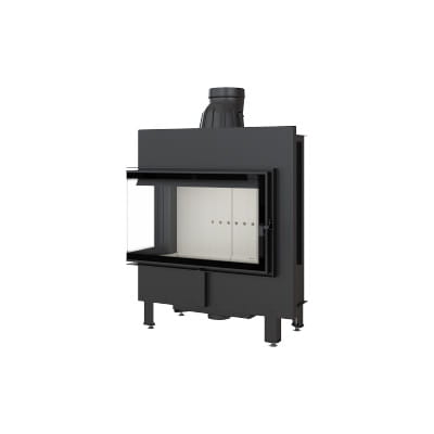 Wkład o ciekawym kształcie, z bocznym przeszkleniem. Dzięki dwustronnej wizji ognia i delikatnej ramie frontowej doskonale wpisuje się w stylistykę nowoczesnych wnętrz. Tego typu kominek jest często wybierany w przypadku otwartych pomieszczeń, w których łączone są różne przestrzenie, np. salon z jadalnią. Zastosowana w kominku specjalnie profilowana płyta dolna sprawia, że mieści on w sobie większą ilość drewna. Nowoczesne rozwiązania zastosowane w urządzeniu gwarantują oszczędność energii i sprawiają, że jego obsługa i czyszczenie są bezproblemowe.