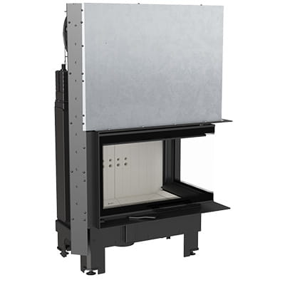 Drzwi wkładu pracują w systemie lift up - szyba unoszona do góry. System ten został zbudowany w oparciu o przeciwwagę - dwa bloczki (po obu stronach drzwiczek) z linką stalową pracują w prowadnicach na dwóch łożyskowanych krążkach, dzięki którym ciężar drzwi rozkłada się równomiernie. Poruszają się one na ogniotrwałych łożyskach wzdłuż, zamontowanych w futrynie prowadnic ślizgowych, co gwarantuje ich lekką, cichą i bezawaryjną pracę. Ruch drzwiczek przebiega w odległości paru milimetrów od korpusu, co zapobiega uszkodzeniu uszczelnienia. Zamykane drzwi są wtłaczane z dużą siłą w głąb futryny, dzięki czemu palenisko jest całkowicie szczelne.