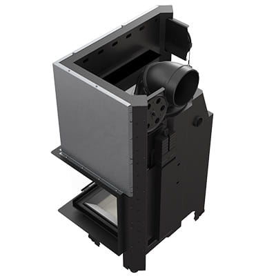 Potrójny system dopowietrzenia komory spalania: powietrze pierwotne - skierowane jest na płytę, na której odbywa się spalanie; powietrze wtórne dostarczane jest otworami w tylnej ścianie. Dodatkowo we wkładzie zastosowany jest system czystej szyby (kurtyna powietrza).