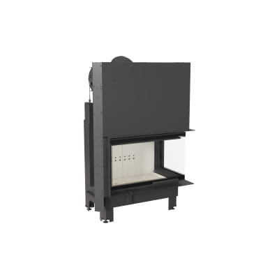 Wkład kominkowy z dwoma szybami zestawionymi ze sobą pod kątem prostym (szyby łączone bez szprosa).