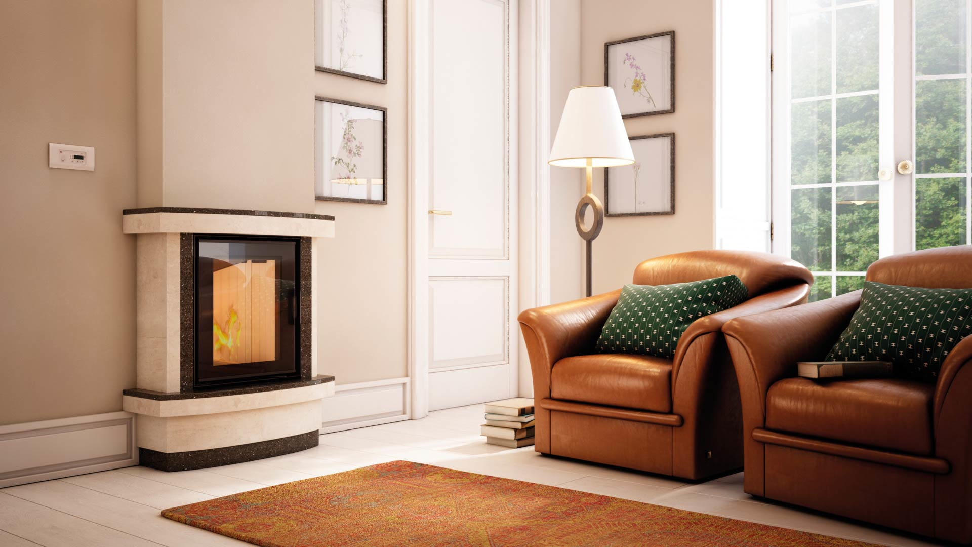 Potrójny system dopowietrzenia komory spalania: powietrze pierwotne - skierowane jest na płytę, na której odbywa się spalania; powietrze wtórne dostarczane jest otworami w tylnej ścianie. Dodatkowo we wkładzie zastosowany jest system czystej szyby (kurtyna powietrza).