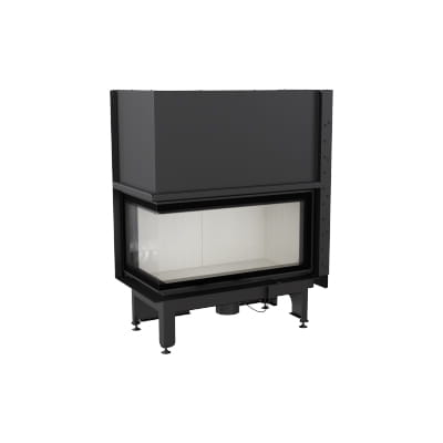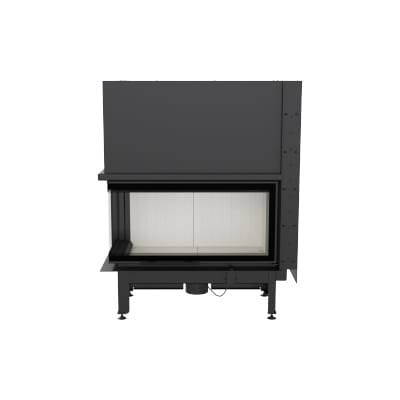 Wkład kominkowy z dwoma szybami zestawionymi ze sobą pod kątem prostym (szyby łączone bez szprosa).