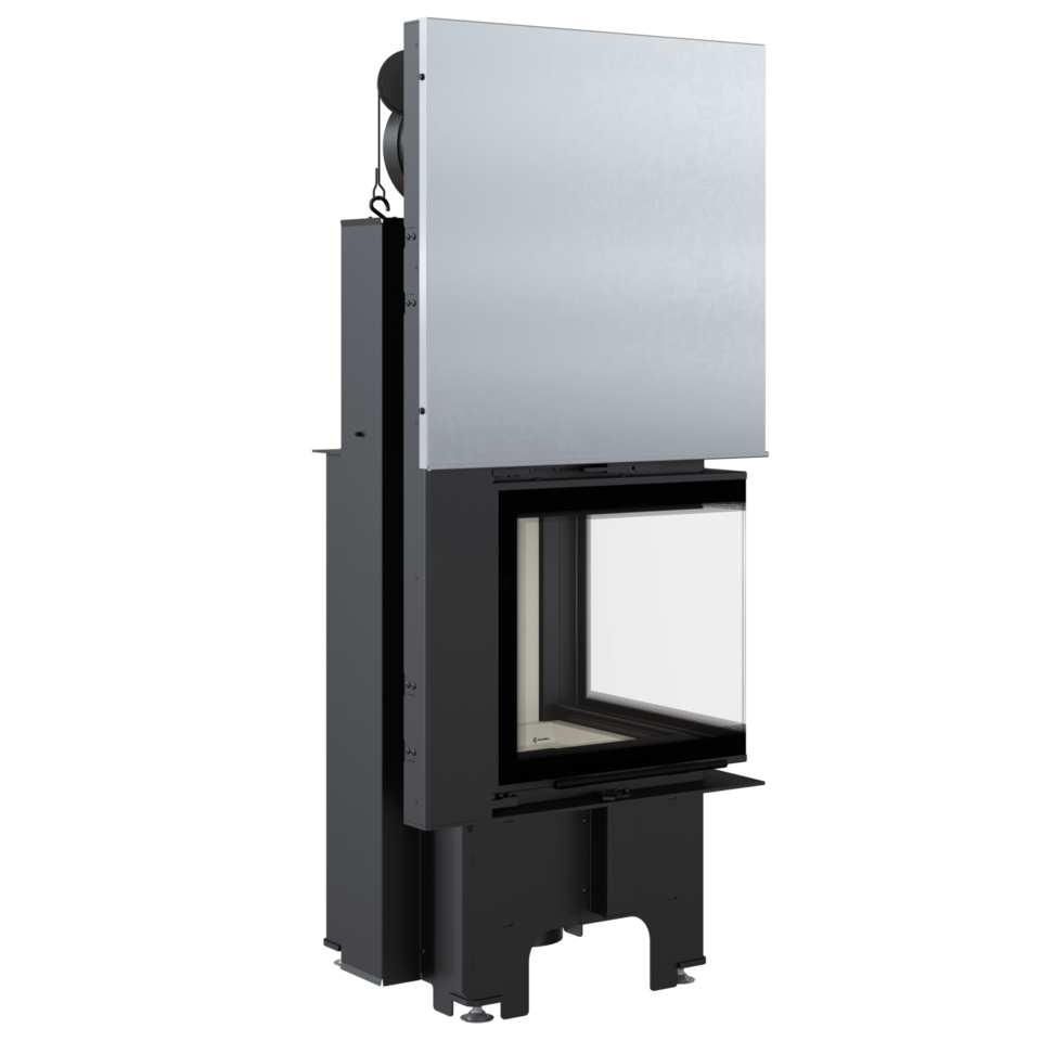 Nowoczesny wkład VN w wersji z drzwiami unoszonymi do góry (gilotyna - system lift up) z bocznym przeszkleniem bez szprosa łączy w sobie unikalną estetykę i wyjątkowe właściwości użytkowe. Poza walorami wizualnymi, urządzenie gwarantuje sprawne ogrzewanie pomieszczeń i ekologiczne spalanie drewna. Dzięki zastosowaniu nowoczesnych materiałów oraz innowacyjnych rozwiązań technicznych, charakteryzuje się bardzo subtelnym wyglądem. Jedną z jego wielu zalet jest możliwość podłączenia dolotu powietrza z zewnątrz. Elegancji wkładu dodaje dekoracyjne przeszklenie typu Glass. Ponadto posiada on blokadę rodzicielską, chroniącą przed niepowołanym otwarciem drzwi.
