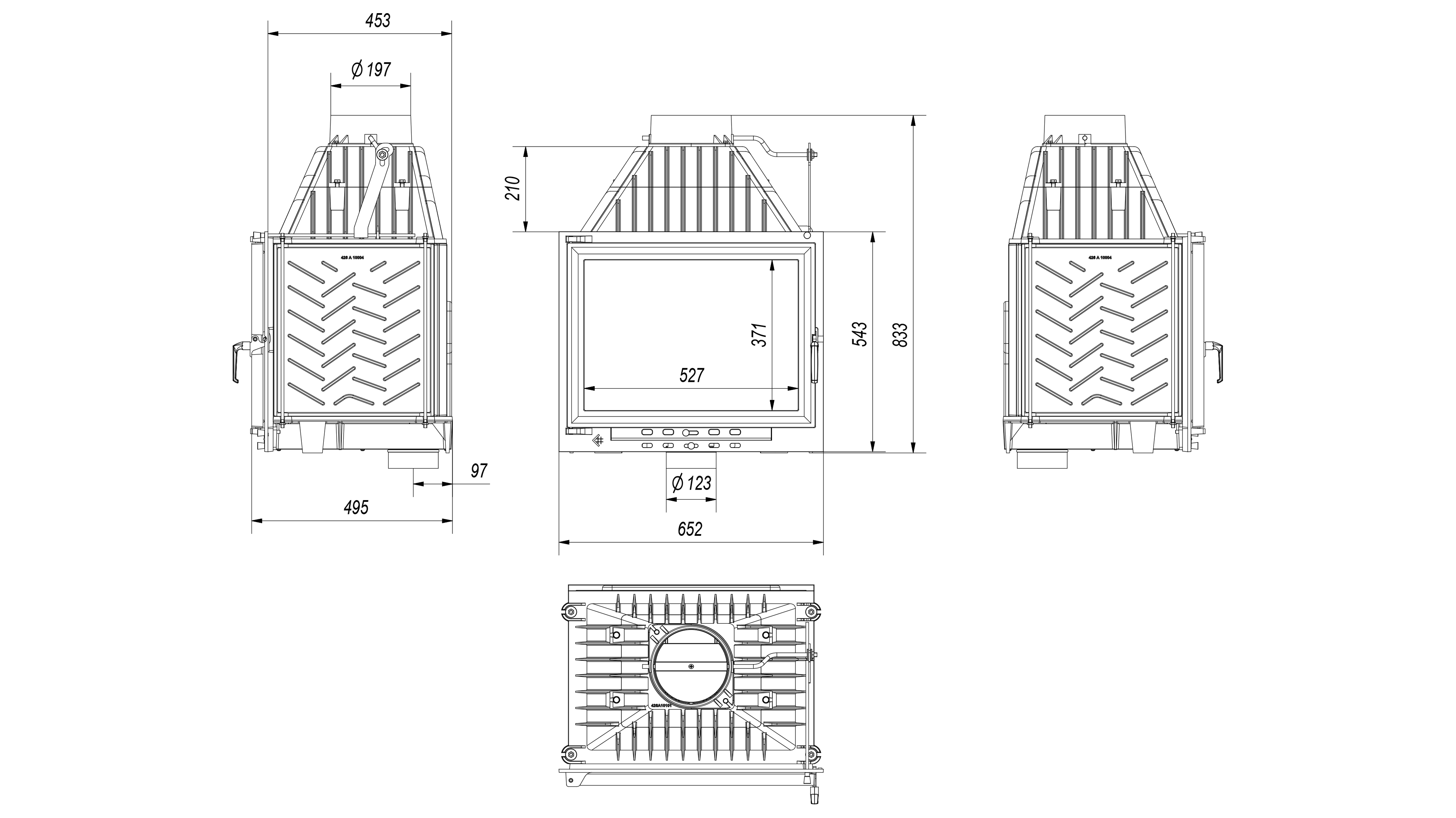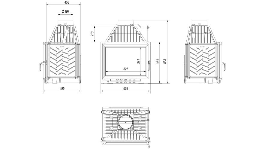 | Wyposażenie | - nawiew powietrza na szybę - wymienna tylna płyta - ogranicznik drewna - ruszt uszczelka z pamięcią kształtu |