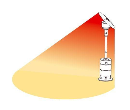 Parasol ma zasięg aż do 3 metrów wokół, dzięki niemu nawet w chłodne dni i wieczory możliwe jest spędzanie czasu w ogrodzie lub na tarasie.