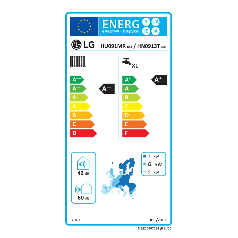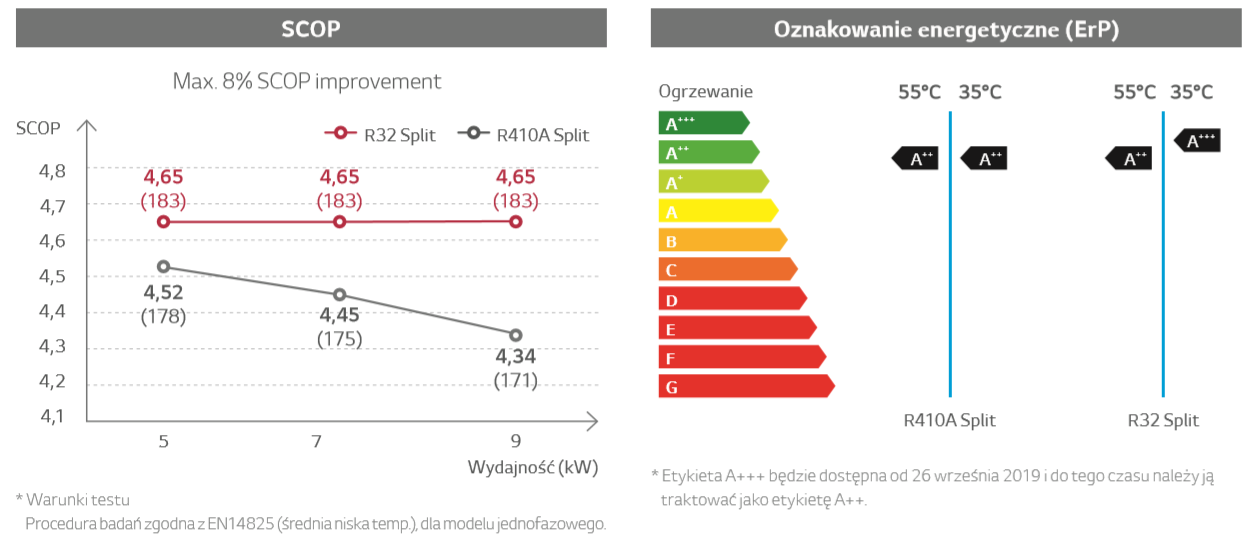 Kombinacja sprężarki R1 i czynnika chłodniczego R32 powoduje, że produkt ten może się szczycić wartością 4,65 wskaźnika sezonowej efektywności (SCOP) w trybie ogrzewania oraz etykietą A+++ dla produktów związanych z energią (ErP).