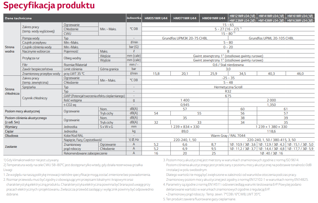 | Przeznaczenie | ogrzewanie; chłodzenie; przygotowanie C.W.U |