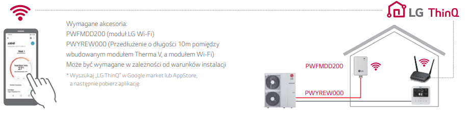 Aplikacja LG ThinQ umożliwia użytkownikom zdalne monitorowanie i sterowanie pompami ciepła LG, dzięki czemu możliwe jest ustawienie temperatury i regulacja w dowolnym czasie i miejscu.