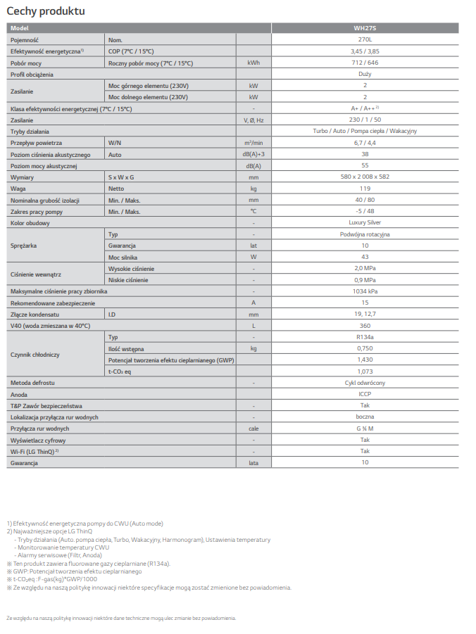 LG THERMA V WH27S 2KW POMPA CIEPŁA DO PRZYGOTOWANIA C.W.U ZE ZINTEGROWANYM 270 L ZASOBNIKIEM