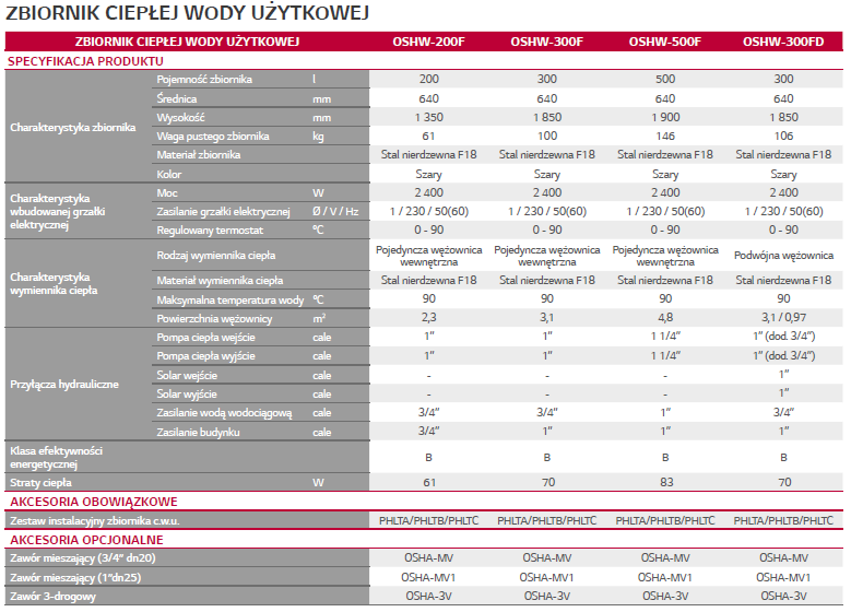 - rezerwowy podgrzewacz elektryczny - dla pomp ciepła typu monoblok (splity wyposażone są fabrycznie w grzałki zapasowe)