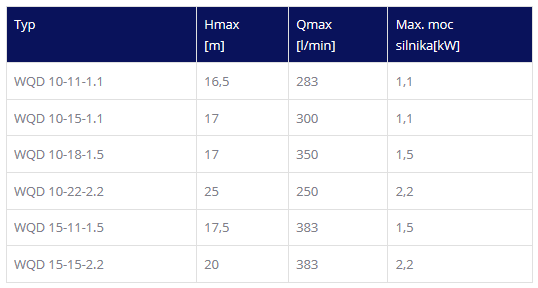 POMPY ZATAPIALNE DO ŚCIEKÓW I FEKALIÓW SERII WQD