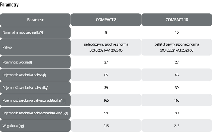 Kocioł COMPACT 8-10kW jest wyposażony w nowoczesny palnik na pellet. Palnik został zaprojektowane z myślą o maksymalnej efektywności spalania oraz minimalizacji emisji szkodliwych substancji. Palnik jest przystosowany do spalania pelletu drzewnego zgodnego z normą 303-5:2021+A1:2023-05.