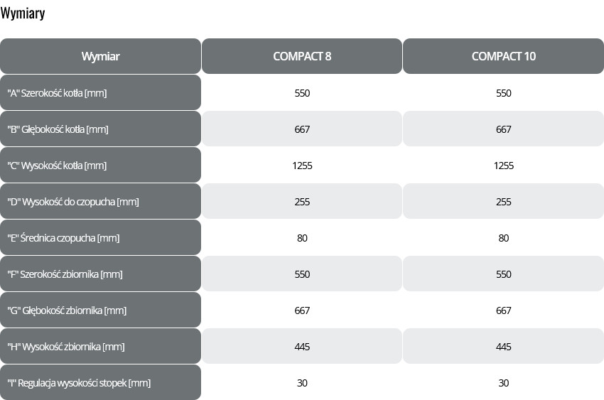 | Wymiary (wys. x szer. x głęb.) [mm] | 1255 x 550 x 667 + wys. nadstawki |