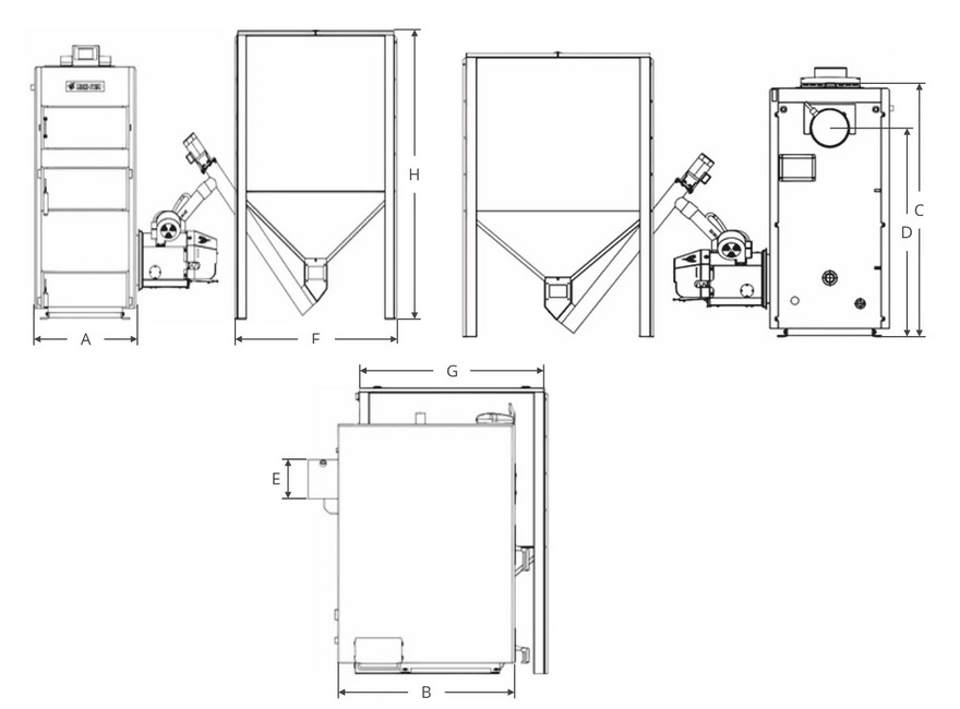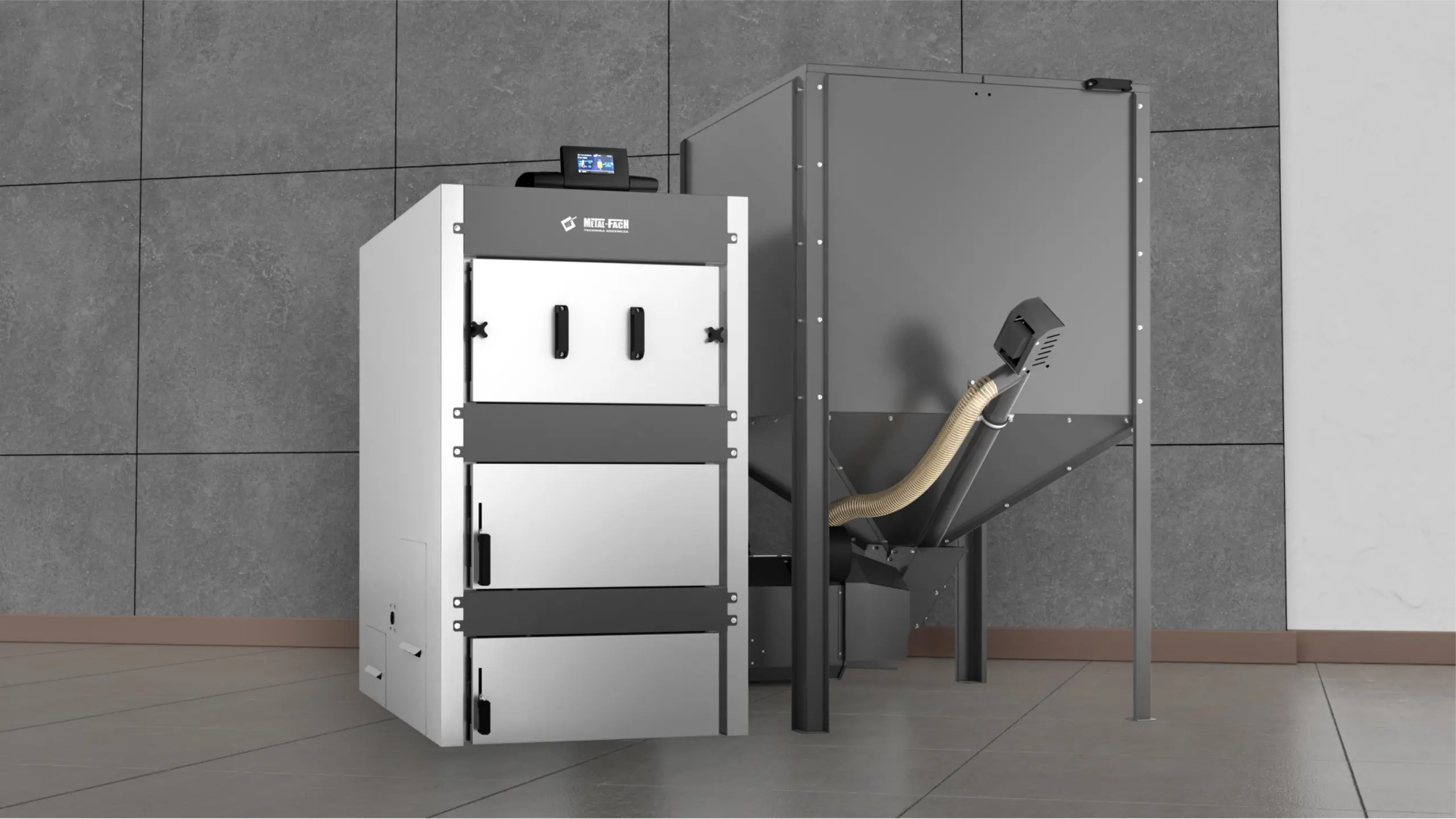 METAL-FACH SEG PELLET KOCIOŁ PELLETOWY Z AUTOMATYCZNYM PODAJNIKIEM PO PRAWEJ STRONIE 75 KW - CZOPUCH DO TYŁU