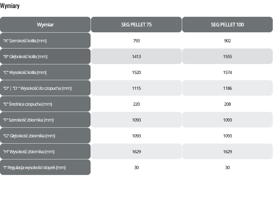 | Wymiary komory zasypowej [szer. x gł. x wys.] | 1093 x 1093 x 1629 |