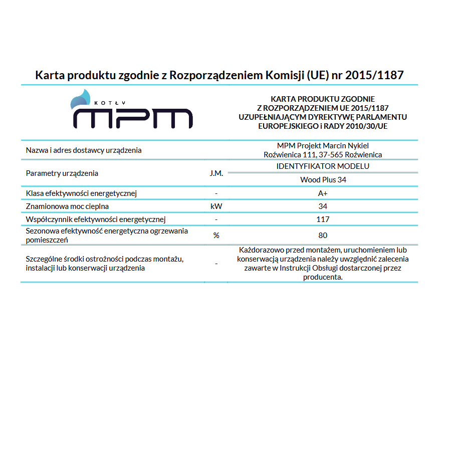 Kocioł MPM Wood Plus jest kolejnym wcieleniem kotła zgazowującego paliwo stałe - drewno. Następna generacja naszej (polskiej) produkcji z zastosowanym systemem oddymiania komory załadowczej, który zapobiega zadymianiu kotłowni podczas dokładania opału. W ofercie posiadamy kocioł,o najmniejszej mocy na rynku - 6 kW, a także 10kW, 14kW, 18kW, 26 kW, 34kW oraz 68kW. Kocioł Wood Plus dostępny również w wersji S.Z.!*