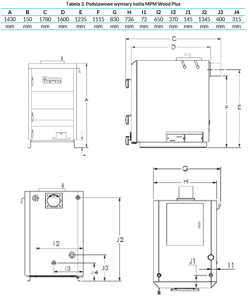 | Min. przekrój komina | mm | 160x160 | 180x180 | 180x180 | 180x180 | 180x180 | 180x180 | 180x180 |