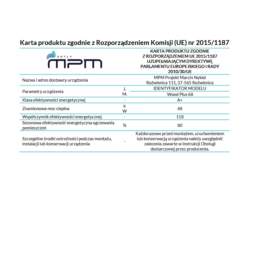 Kocioł MPM Wood Plus jest kolejnym wcieleniem kotła zgazowującego paliwo stałe - drewno. Następna generacja naszej (polskiej) produkcji z zastosowanym systemem oddymiania komory załadowczej, który zapobiega zadymianiu kotłowni podczas dokładania opału. W ofercie posiadamy kocioł,o najmniejszej mocy na rynku - 6 kW, a także 10kW, 14kW, 18kW, 26 kW, 34kW oraz 68kW. Kocioł Wood Plus dostępny również w wersji S.Z.!*
