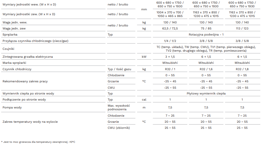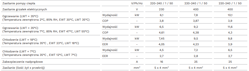 • Wbudowana grzałka zapasowa 6kW