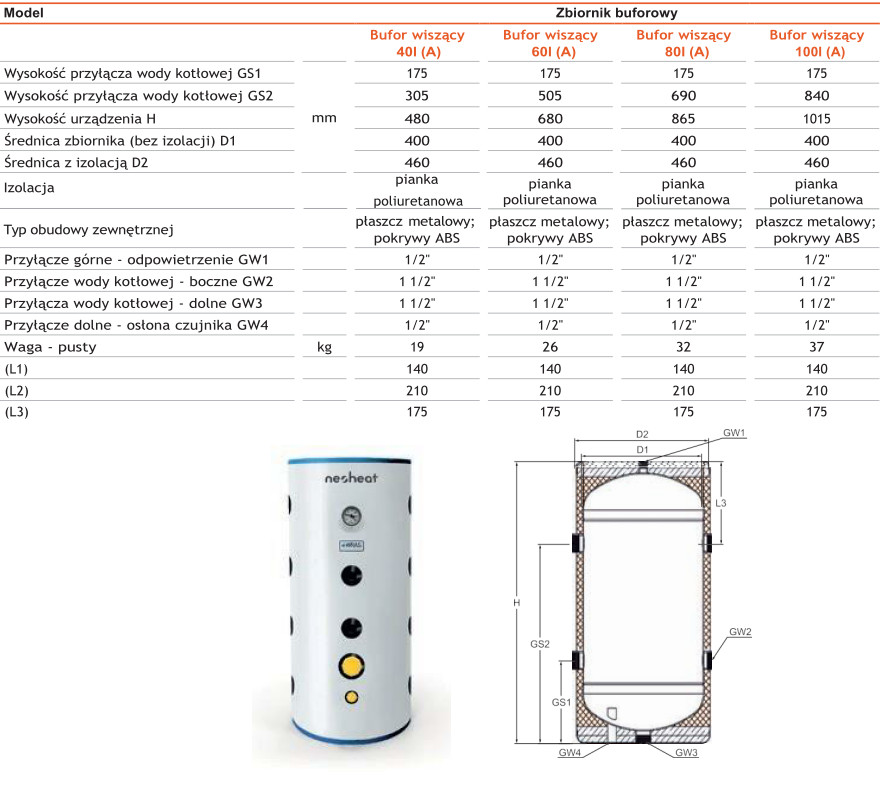 NEOHEAT ZBIORNIK BUFOROWY WISZĄCY OCIEPLONY 100 L (TYP A) PCA00158