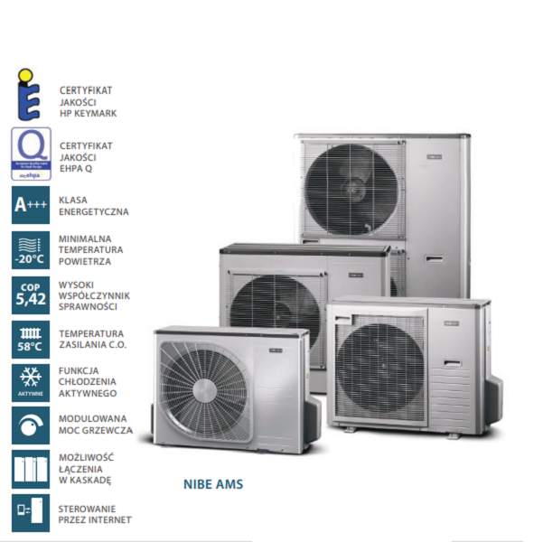 - COP 5,42 (dot. NIBE AMS 20-6, przy A7/W35, wg EN 14511)