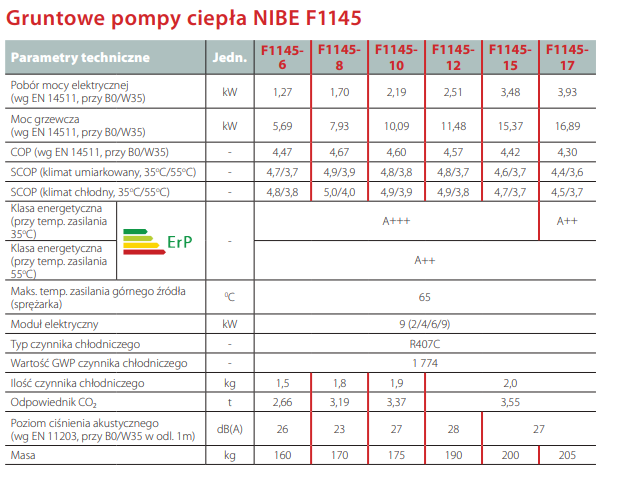 Pompy ciepła nowej generacji typu solanka/woda lub woda/woda zaprojektowane do oszczędnego i ekologicznego ogrzewania oraz produkcji ciepłej wody użytkowej w domach jedno- i wielorodzinnych. Nowa generacja pomp ciepła NIBE to jeszcze wyższa efektywność, niższe koszty ogrzewania, a także przyjazny dla użytkownika system sterowania pracą urządzenia. Pompa ciepła NIBE F1145 umożliwia podłączenie zewnętrznego zbiornika c.w.u. różnej budowy i pojemności. Z kolei NIBE F1245 to pompa dwufunkcyjna ze zintegrowanym wężownicowym zasobnikiem c.w.u. o pojemności 180 litrów. Pompy ciepła F1145/1245 można łączyć w kaskadę do 9 jednostek. Przy wysokim zapotrzebowaniu na ciepło istnieje możliwość utworzenia kaskady z dwusprężarkową pompą ciepła F1345.