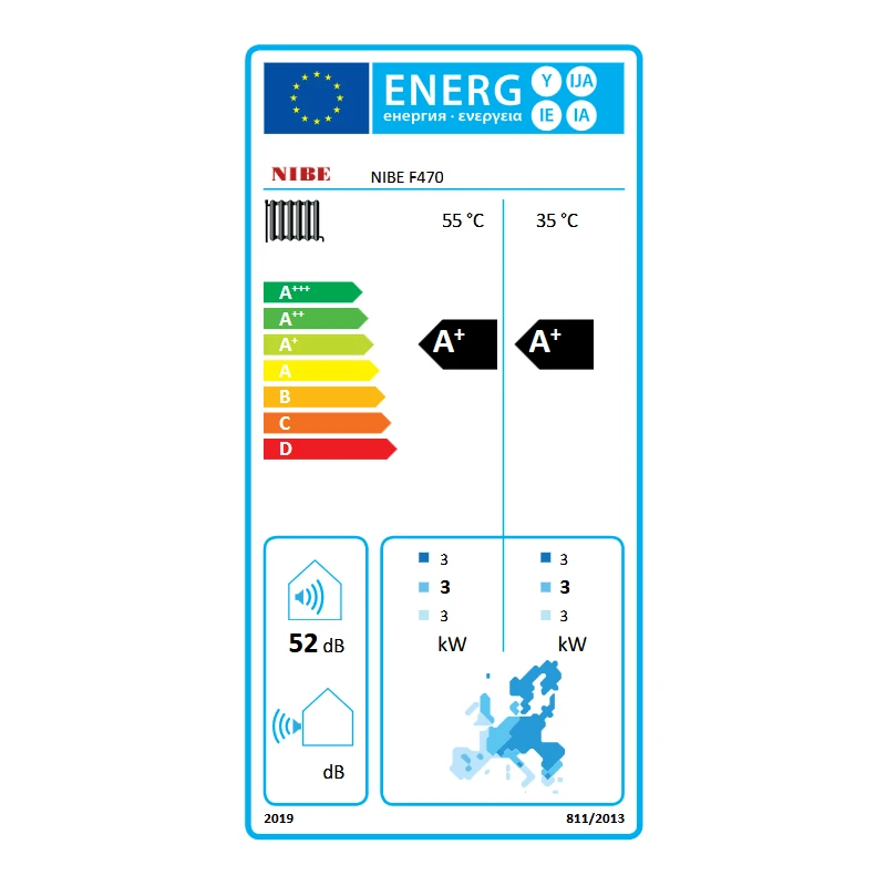 - Zasilanie 3x400 V – Klasa energetyczna A+ (zgodnie z Dyrektywą ErP, przy temp. zasilania 35o C)