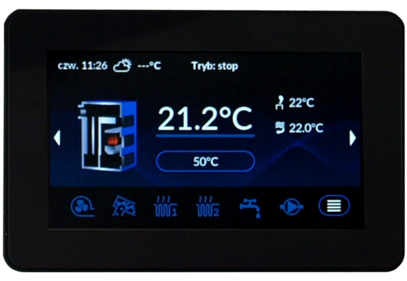 Dotykowy, wielofunkcyjny i prosty w użytkowaniu. Automatyzuje obsługę pomp CO, CWU, zaworu mieszającego, mieszacza i sterowania pogodowego.