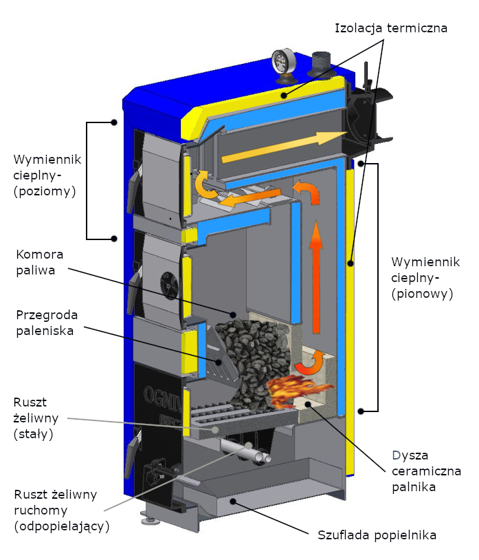 Wykorzystuje technikę dolnego spalania węgla kamiennego zapewniającą ekonomiczne i czyste spalanie paliwa. Jest to rozwiązanie, które pozwala na znaczną oszczędność kosztów związanych z ogrzewaniem domów jednorodzinnych w porównaniu z tradycyjnymi kotłami.