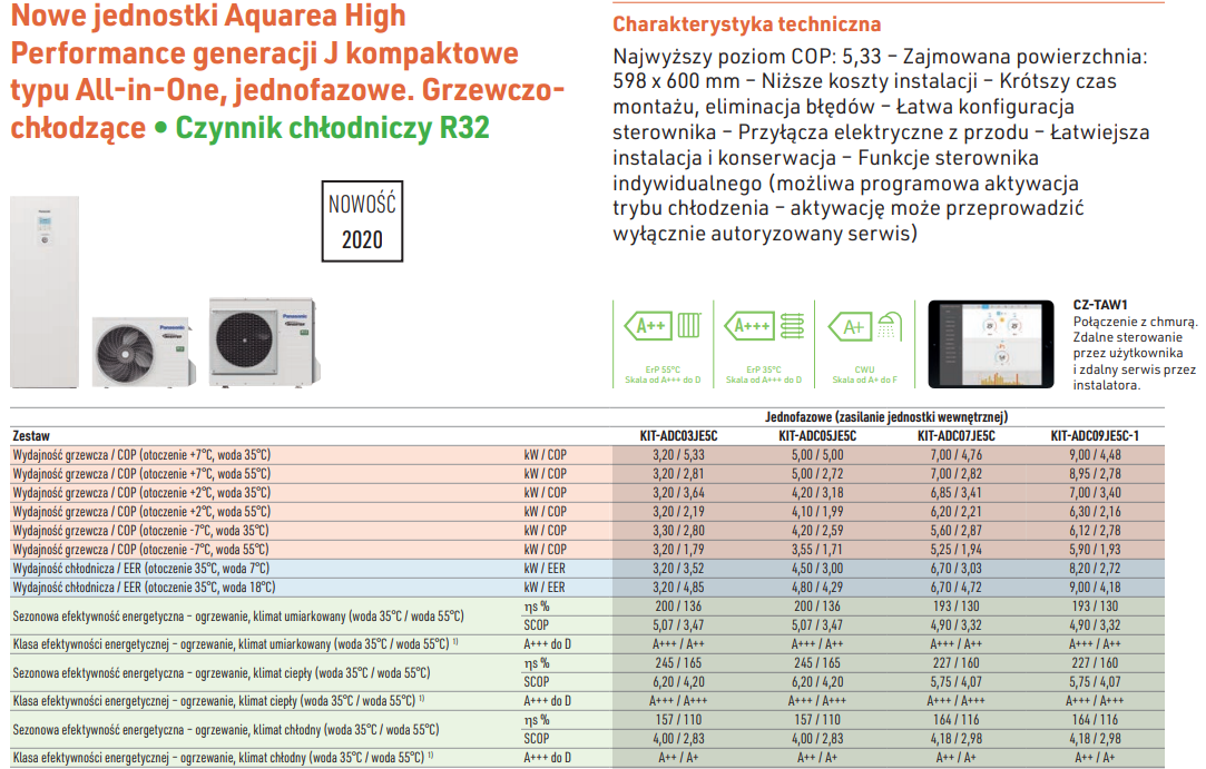 PANASONIC AQUAREA HIGH PERFORMANCE NISKOTEMP. 1-FZ POMPA CIEPŁA 7/6,7 KW TYPU ALL IN ONE DO GRZANIA I CHŁODZENIA - KIT-ADC07JE5C-SM (wersja kompaktowa - zajmuje mniejszą powierzchnię)