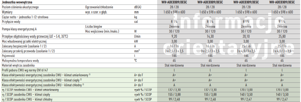 | Kod producenta jednostki wewnętrznej | WH-ADC0309J3E5C |