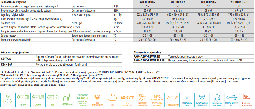 | Kod producenta jednostki zewnętrznej | WH-UD07JE5 |